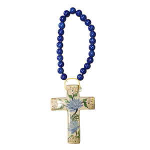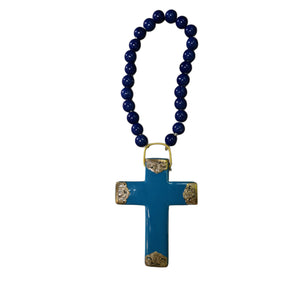 SALE Thalassa Blue ceramic metal wall cross with Dark Blue Beads