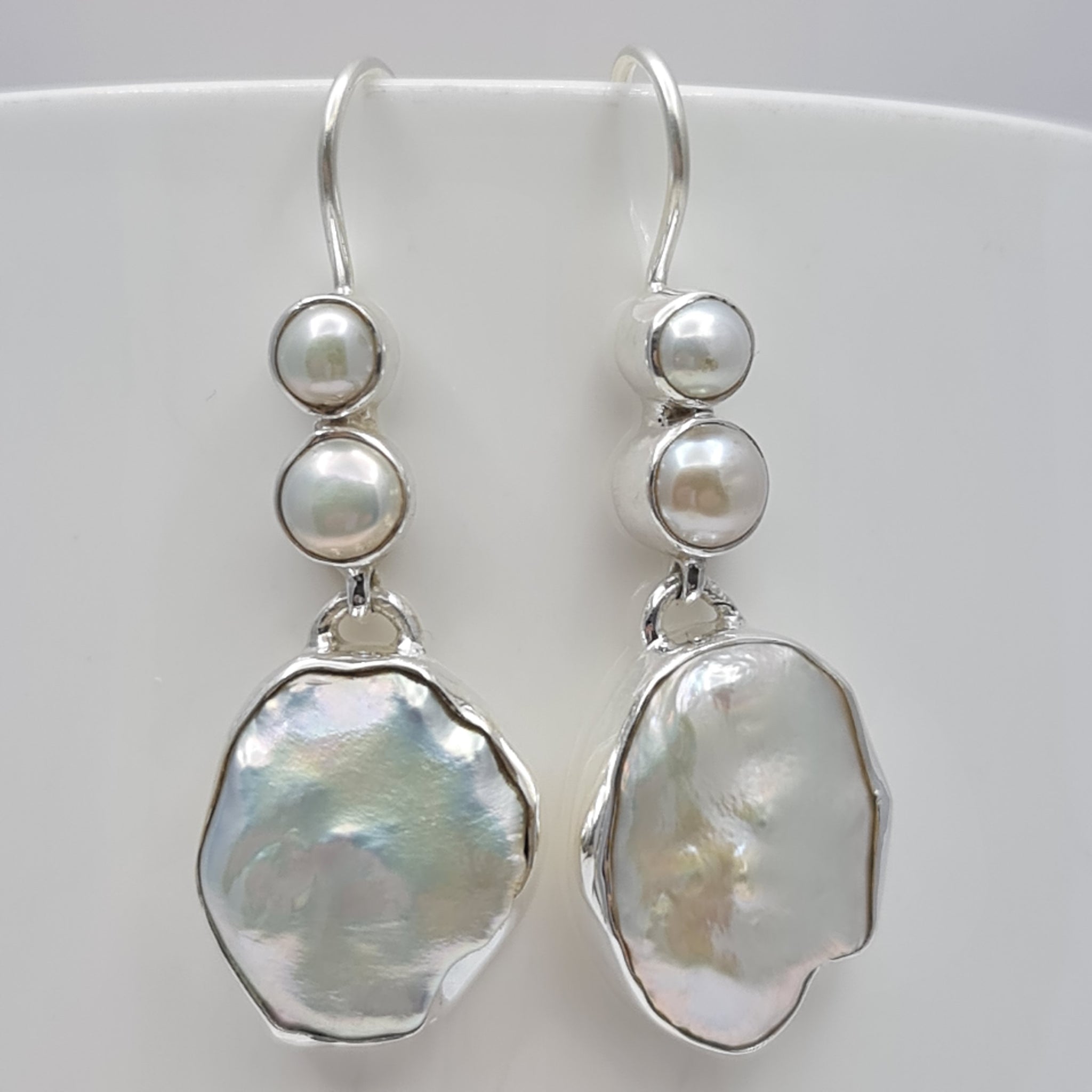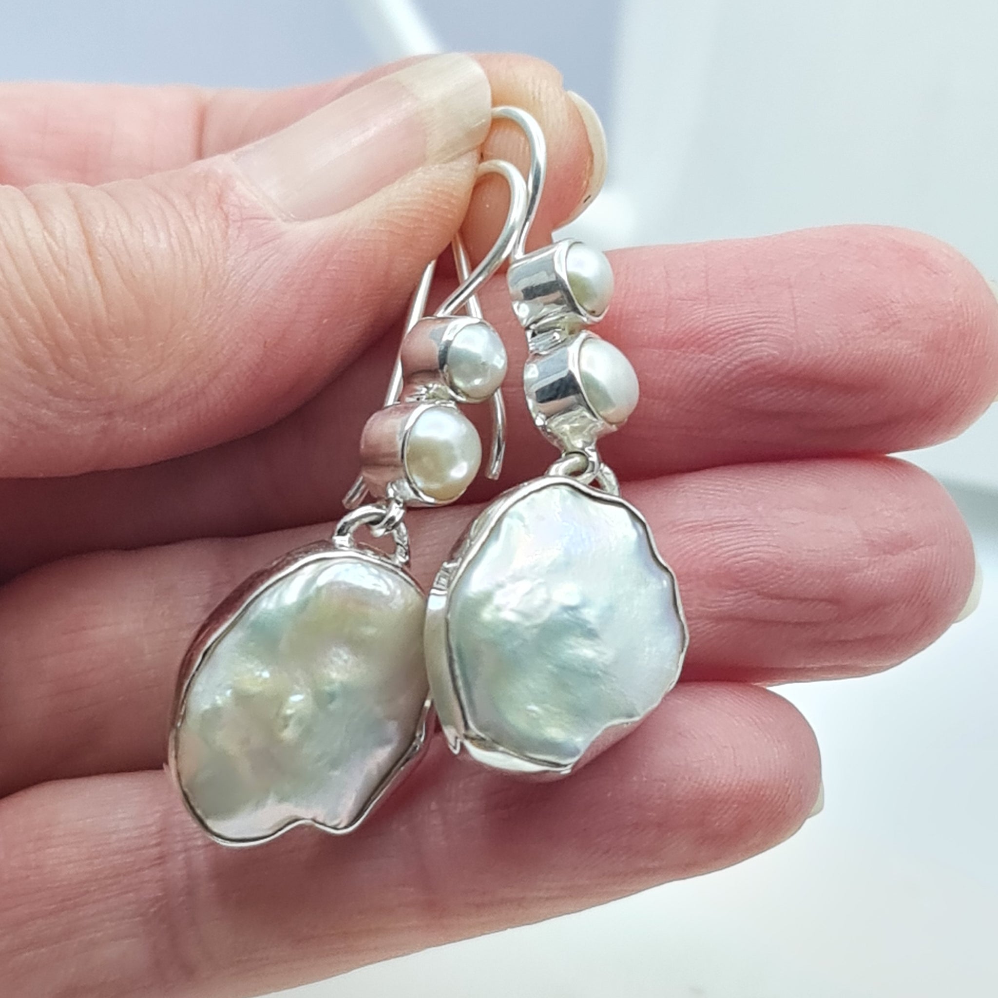 Large statement Dominique Baroque Freshwater pearl drop earrings in 925 sterling silver.