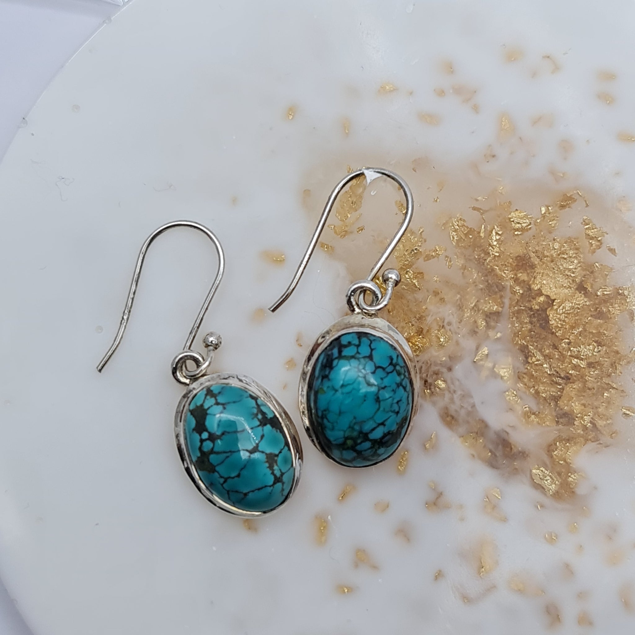 Turquoise semiprecious natural stone drop earrings in 925 sterling silver.